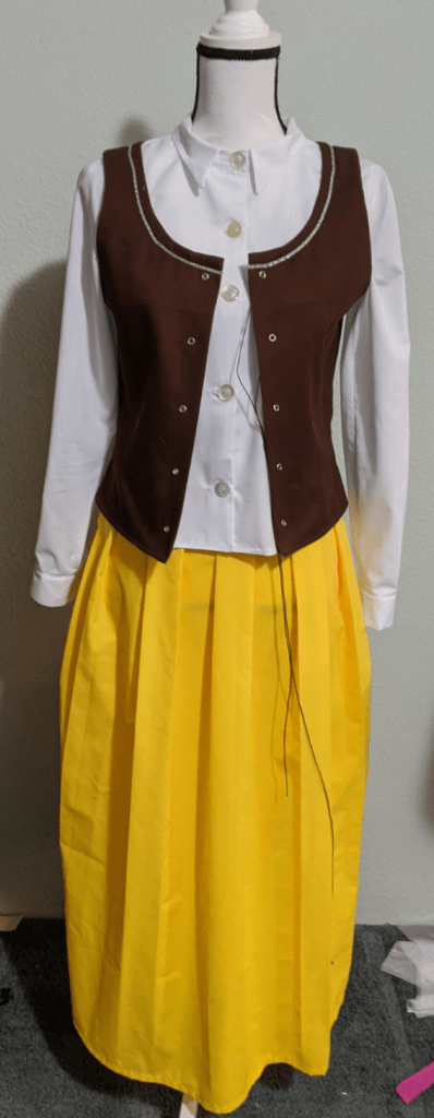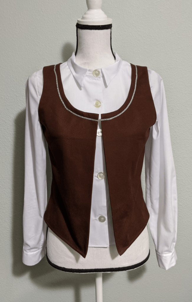 Materials: Broadcloth (Shirt and Skirt) and Cotton Twill (Vest)