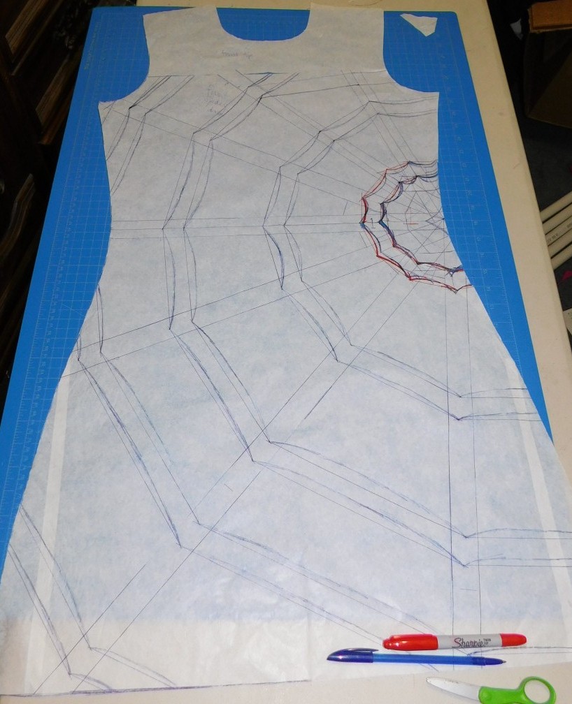 The materials used aren’t generally used together but I love stretch velvet and then I wanted to add some contrasting texture that is reminiscent of spider web and wasn’t too see through.